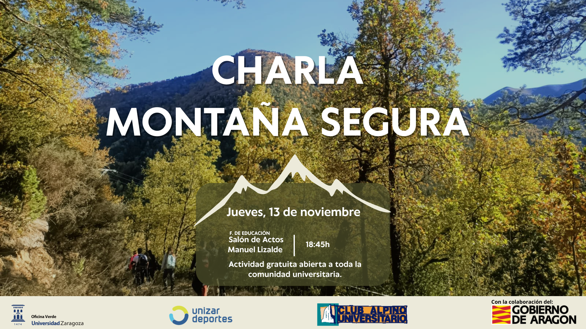 La Universidad de Zaragoza junto al Club de Alpinismo Universitario organizan el próximo jueves 13 de noviembre, a las 18:45 horas, la charla “Montaña Segura”. Una actividad abierta al público interesado en la práctica responsable y segura de las actividades en el medio natural, que se llevará a cabo en el salón de actos Manuel Lizalde de la Facultad de Educación.